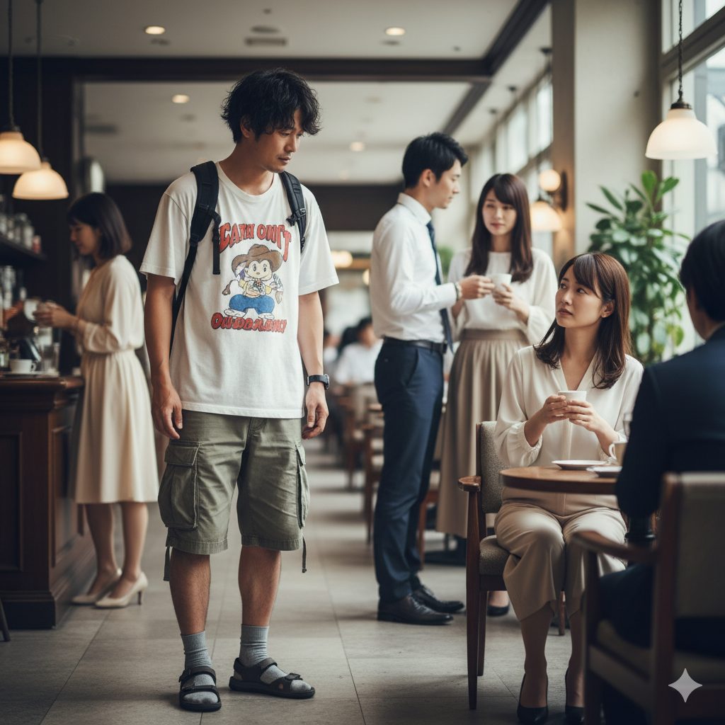 最大の共通点は、ファッションの三大原則である「清潔感」「サイズ感」「TPO(時・場所・場合)」が決定的に欠けていることです。例えば、何度も洗濯を繰り返して色褪せ、首元がヨレヨレになったTシャツは、どんなに高価なブランド品であっても清潔感があるとは到底言えません。また、自分の体型に合っていないブカブカの服はだらしなく見え、逆にピチピチすぎる服装は相手に窮屈な印象や威圧感を与えてしまいます。