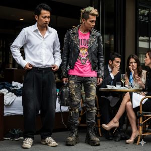 - 威圧感を与えるスタイル:全身ブラックコーデ、鋲やチェーンのついたパンク・ロック風の服装は、相手を怖がらせてしまう可能性があります。